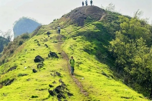 王功山仿佛小秦岭,形成了一条天然的分界线,南边坡缓林深,花繁叶茂;北面绝壁断崖,壁陡石悬。山脊上常常能见整片的石头,经风化剥蚀,形成一个连一个的小窝,窝沿向上伸出如刀片似的利齿。