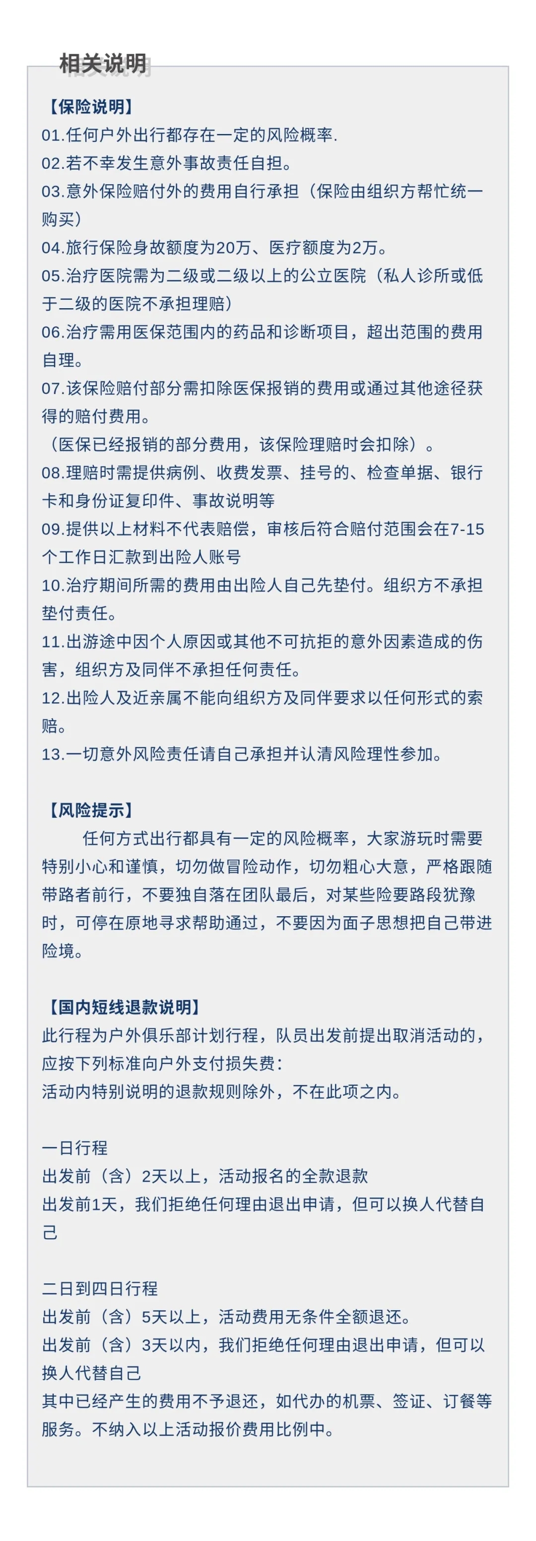 3、专业户外保险;