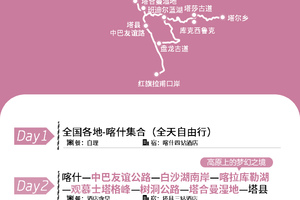 第一天集合,到达喀什,俗话说:不到喀什,就不算真正到过新疆。所有团友自行选择交通工具,从全国各地到达喀什,抵达喀什后自行到达酒店集合,推荐以下景点