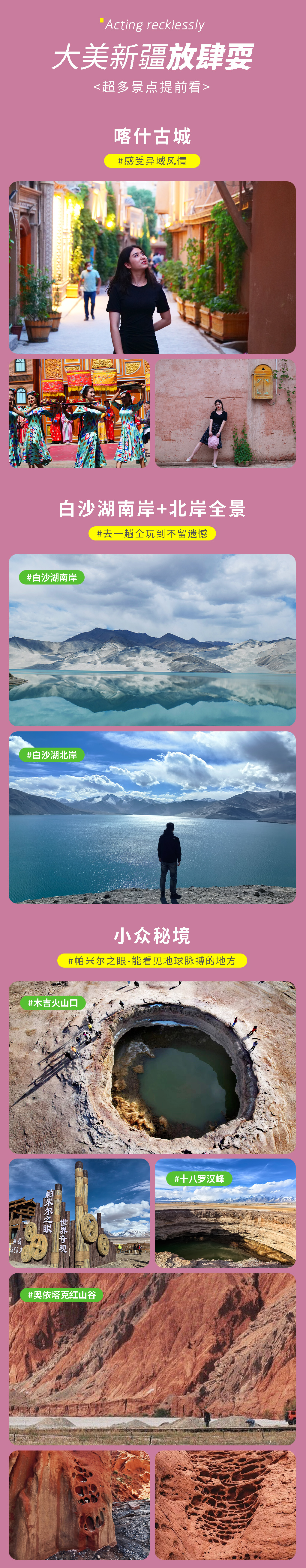 白沙湖北岸-木吉湿地-木吉火山口-十八罗汉峰-奥依塔克红山谷-住喀什(290km,行车约5小时)