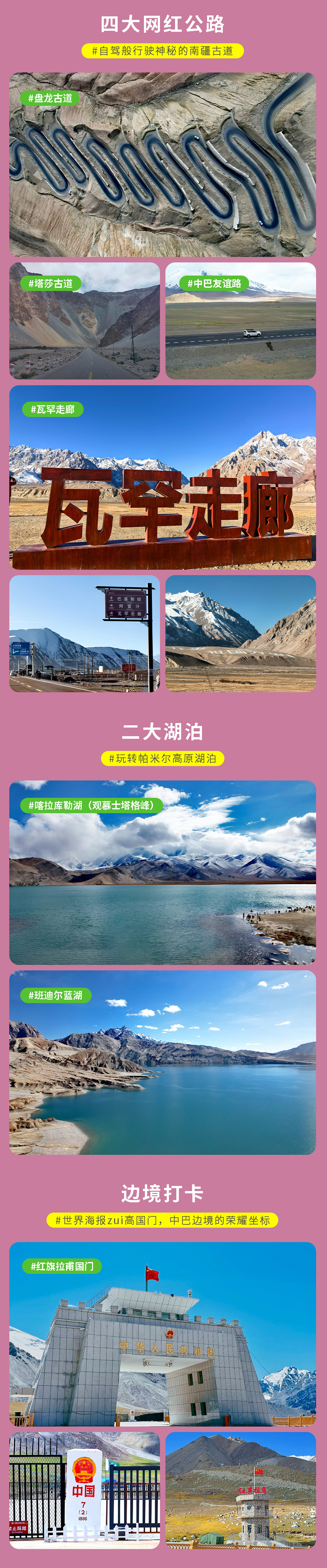 塔县-红其拉甫国门-瓦罕走廊-盘龙古道-班迪尔蓝湖-塔吉克族家访-住塔县(390km,行车约8小时)