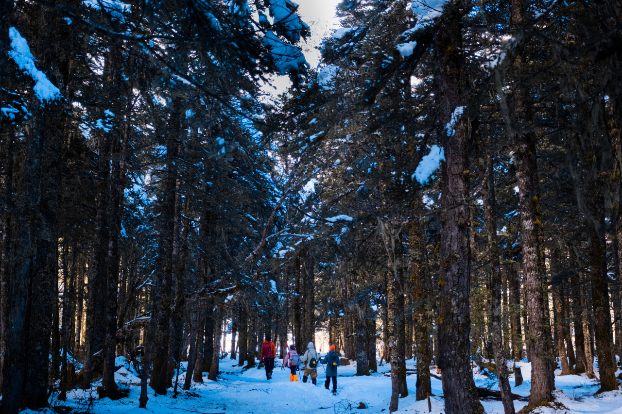 进入原始森林,而后继续前行,到达【笑农大本营】,这里原是中日联合登山队攀登卡瓦格博峰的营地。午餐补充体力后,继续出发抵达【冰湖】。