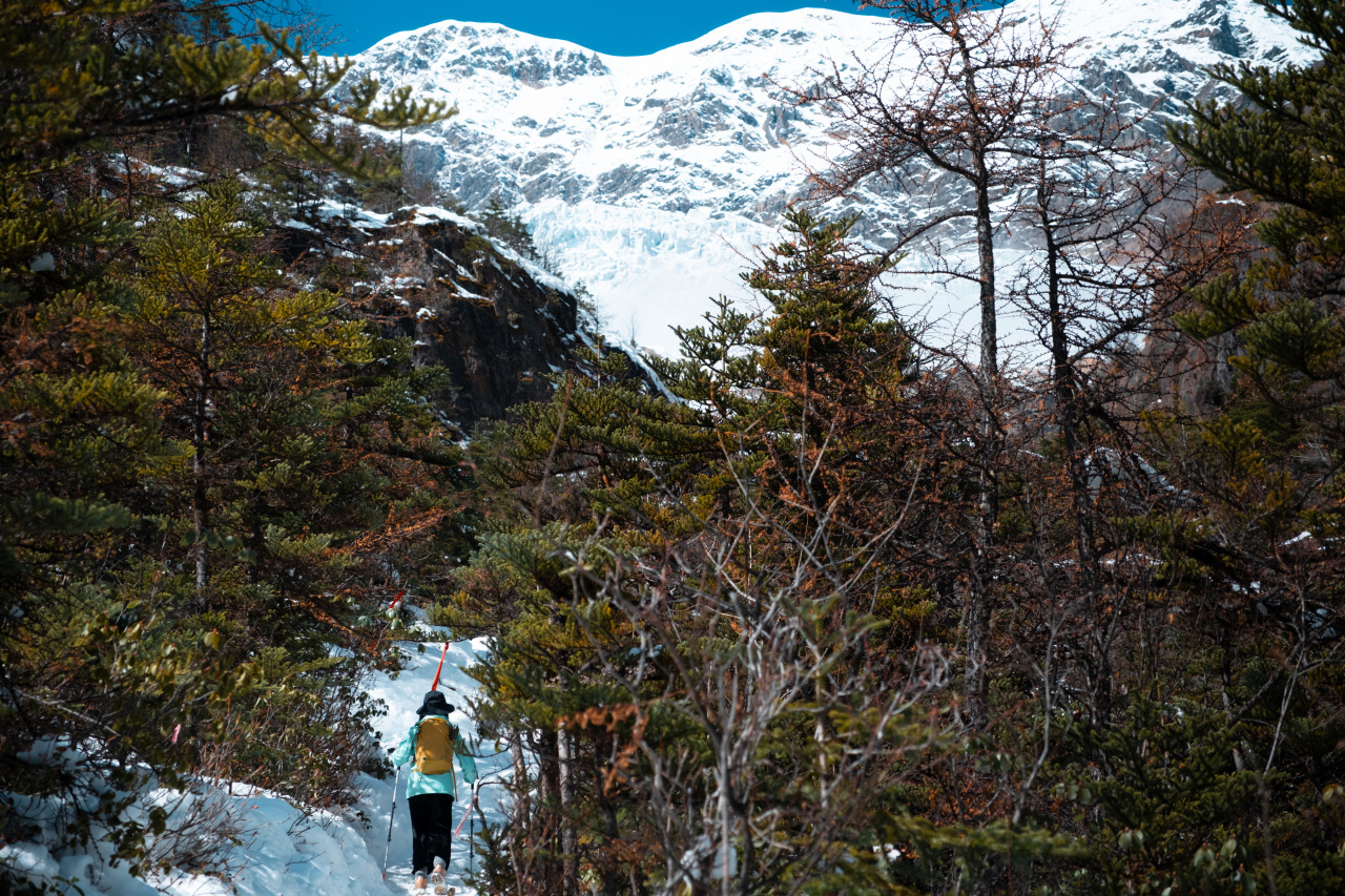 清晨8点,我们将从雨崩村出发,一路徒步到达冰湖。途中我们会穿过村口【沙棘林】,