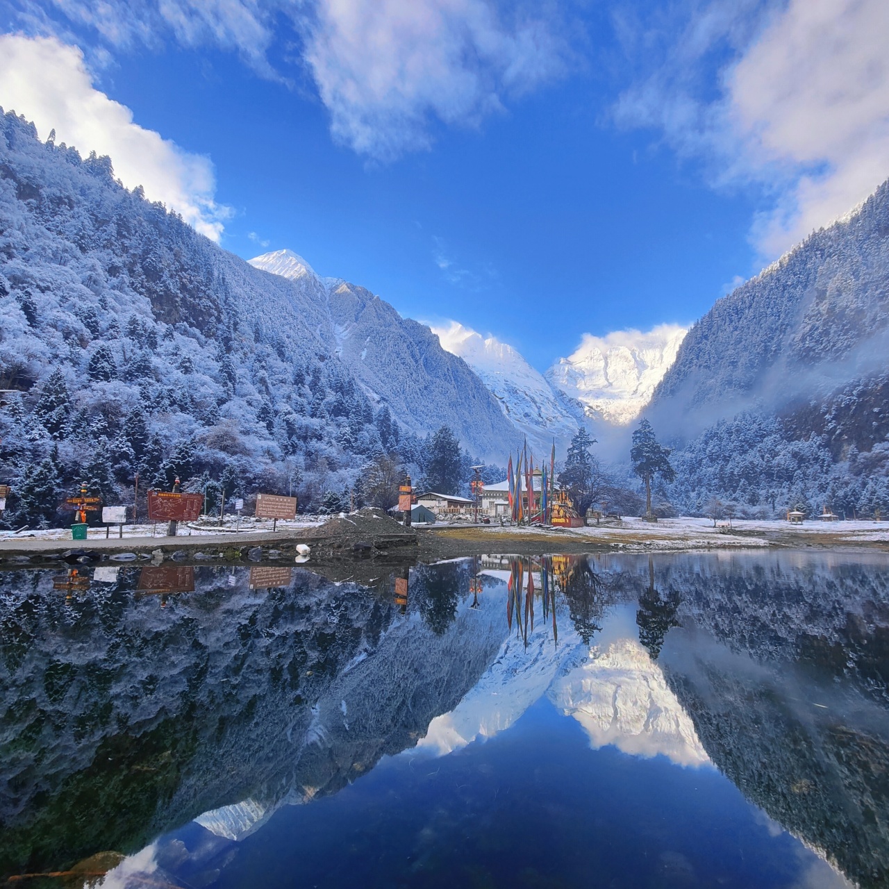 这里可以观看神女峰和五冠峰的全貌,更重要的是这里是朝圣者接受洗礼的地方,只有接受过神水的洗礼,整个朝圣之旅才算是完整,身体和心灵都得到净化,而后我们将原路返回雨崩村客栈休息。