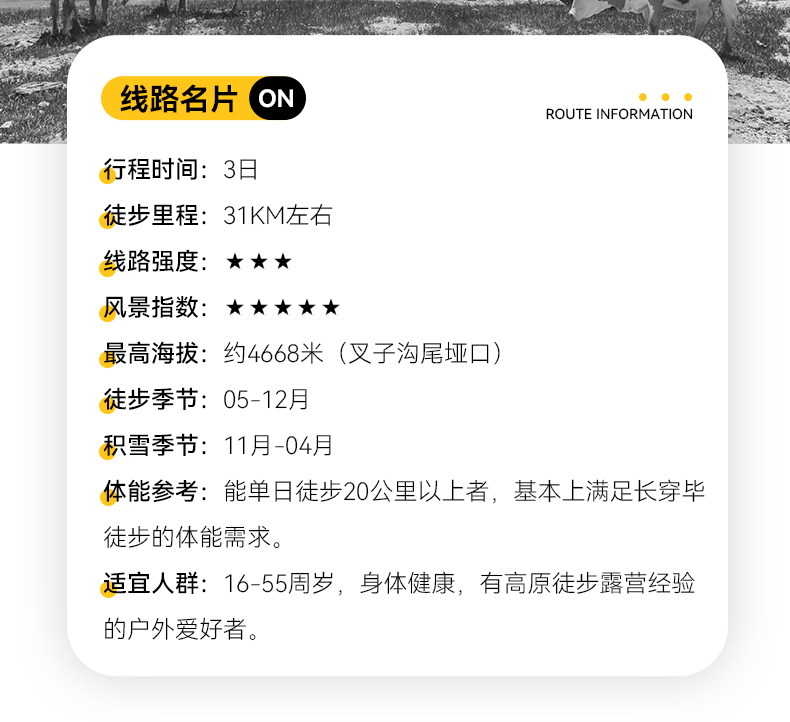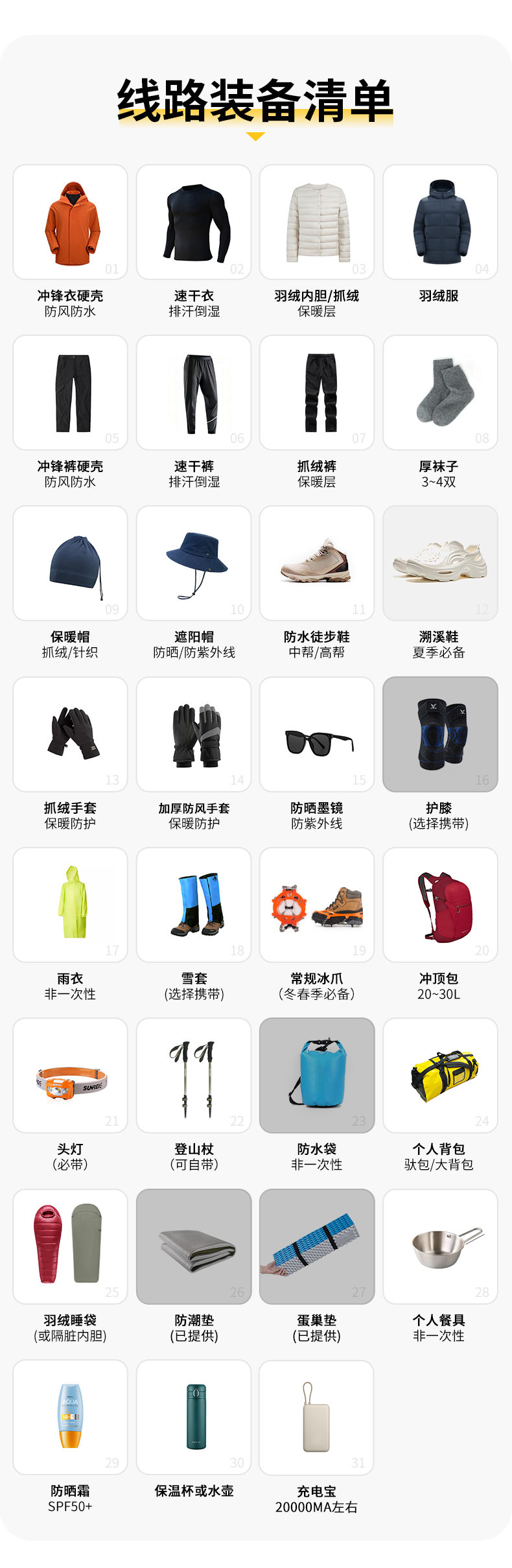 2. 因行程原因,没有集合日,装备讲解可能会在车上进行,请队员们仔细聆听