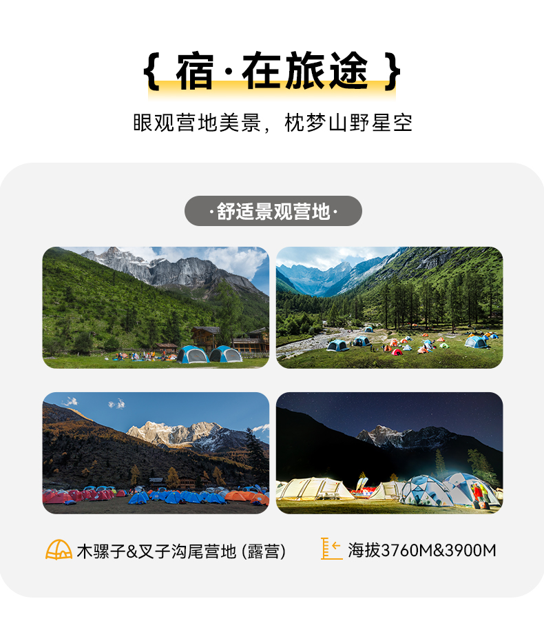 ▷海拔:四姑娘山镇约3200M,木骡子营地约3760M