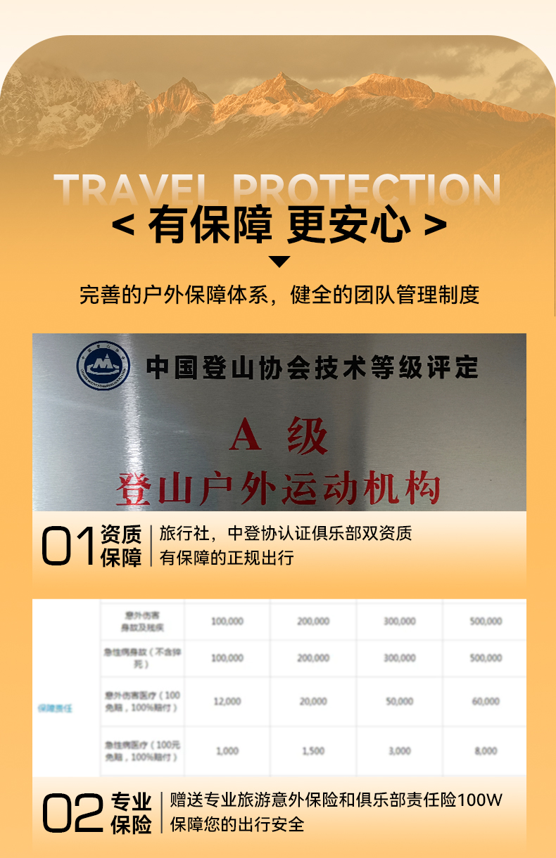 1.保险:赠送专业旅游意外保险和俱乐部责任险130W,