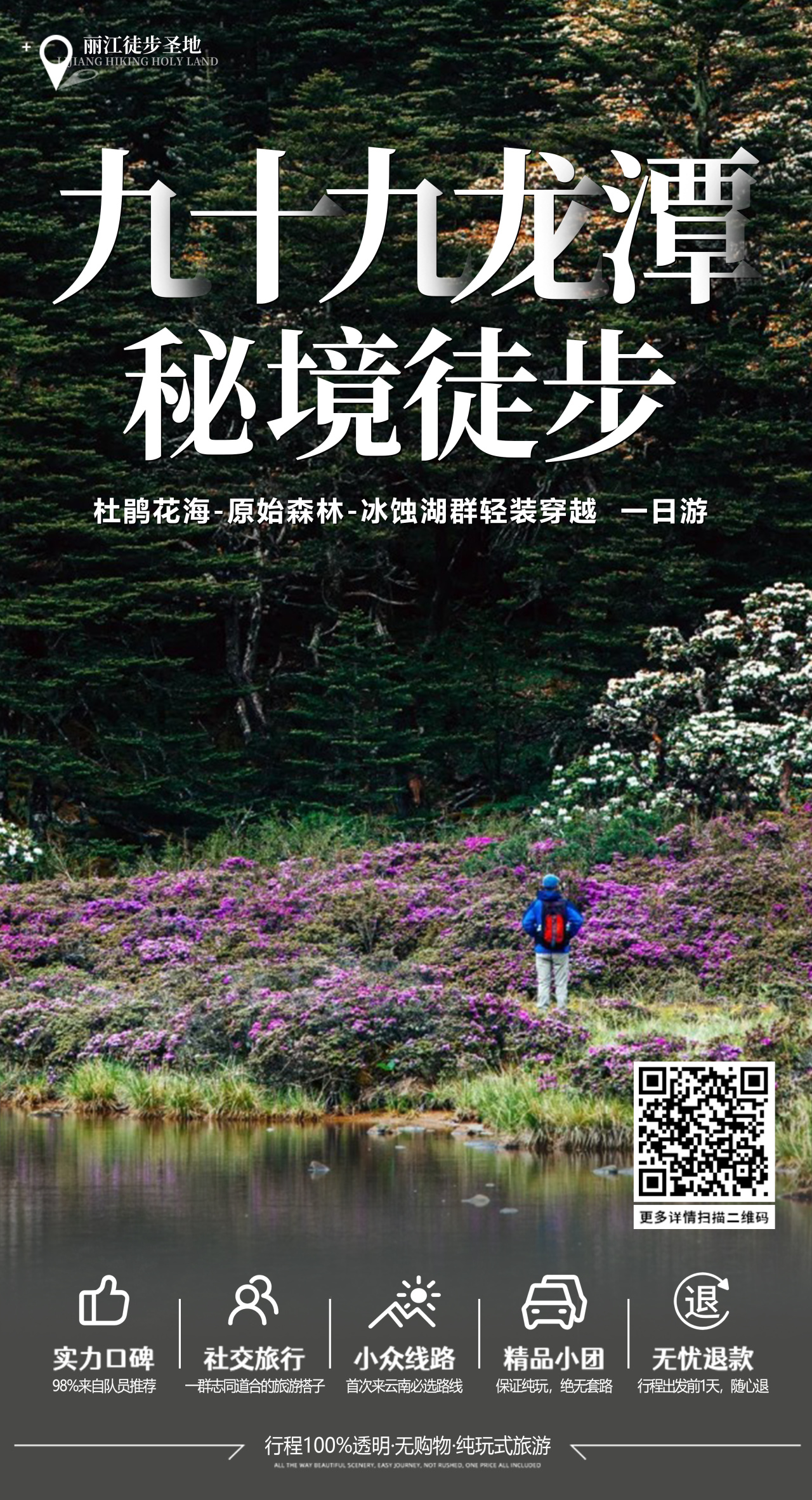 【九十九龙潭】丨丽江秘境徒步丨一日游丨杜鹃花海+原始森林+冰蚀湖群轻装穿越丨精品小团