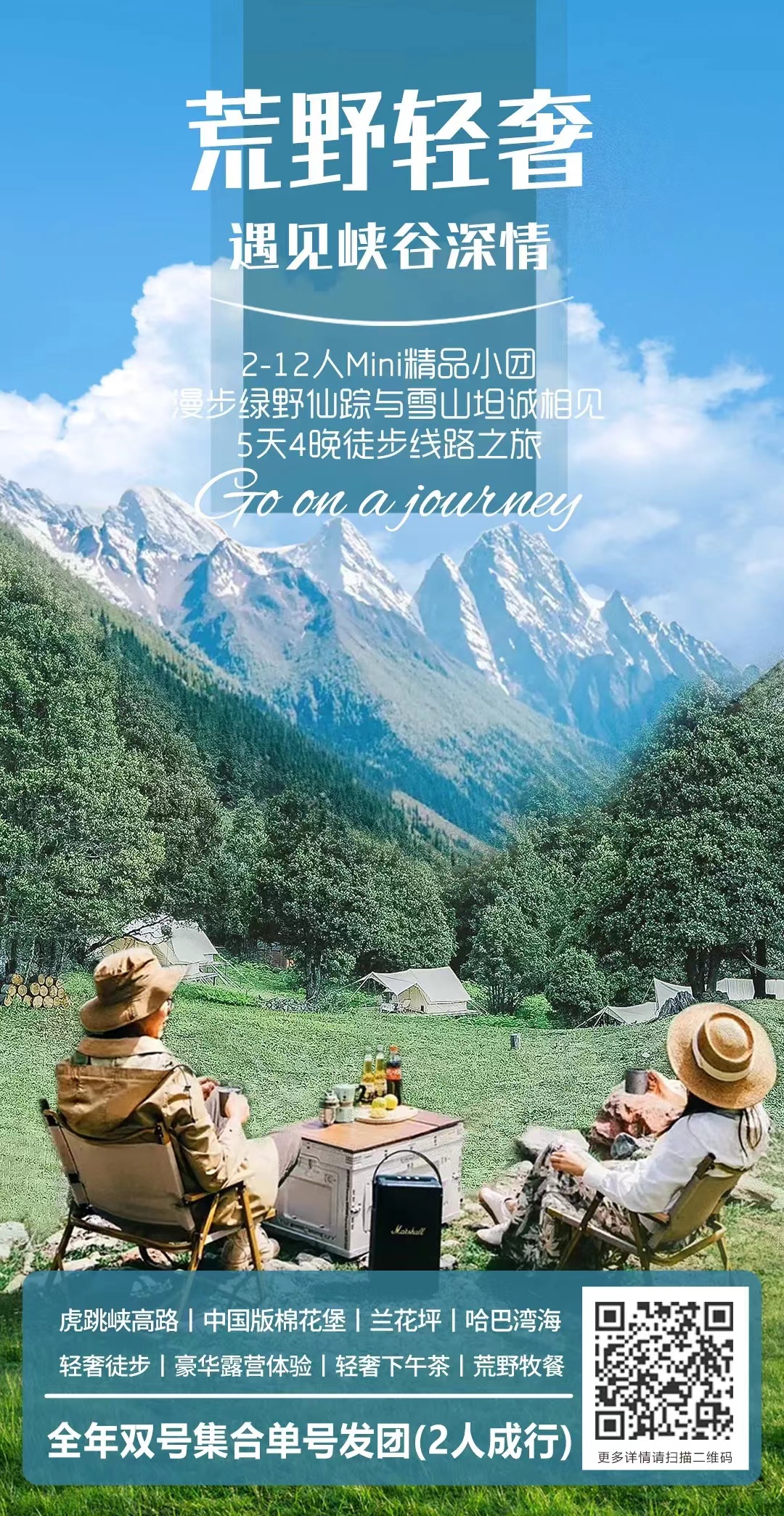 2025【荒野轻奢】丨遇见峡谷深情丨5天4晚丨虎跳峡高路+兰花坪+哈巴湾海+豪华露营体验+轻奢下午茶+荒野牧餐丨2-12人mini精品小团