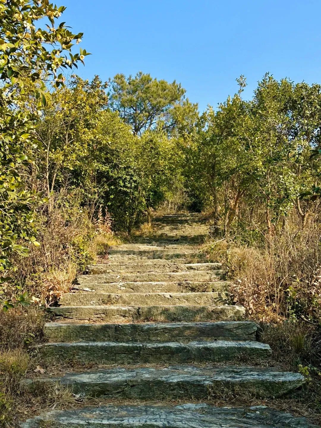 丛林穿越与石板路结合:大部分路段为野路丛林穿越,部分区域有石板台阶路,路况总体较好,适合休闲徒步