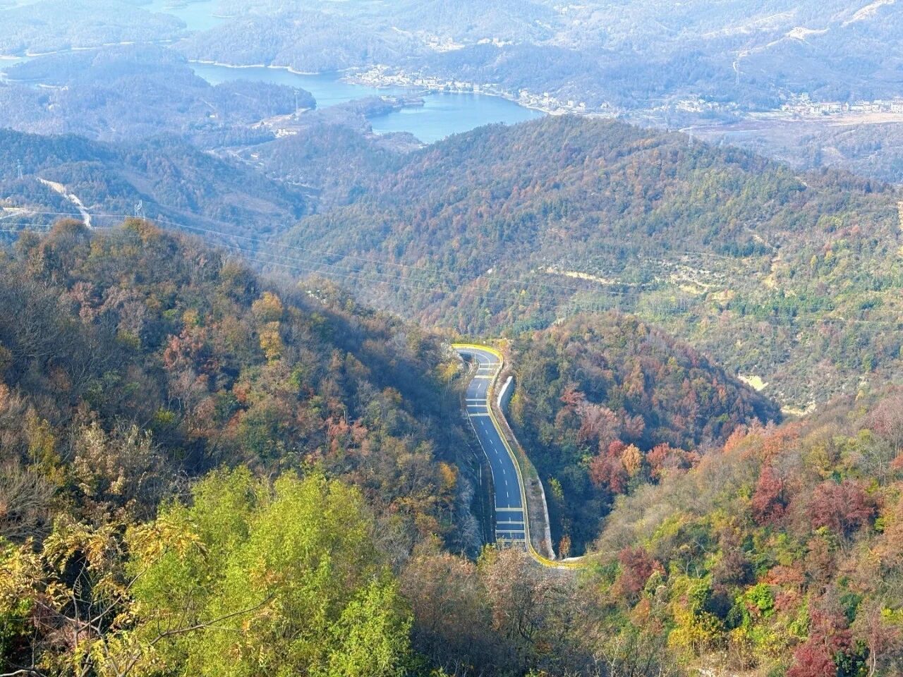 这条徒步线最让人惊喜的,莫过于沿途不断切换的绝美风光。深秋时节,步道两旁的枫树、乌桕树等纷纷变红,漫山红叶如火似霞,沿着步道蔓延开来,形成一条“红色地毯”,行走其间,仿佛置身于红色的海洋。